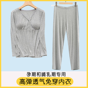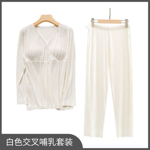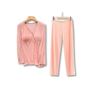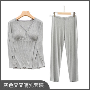 Wrap yourself in calm. This dreamy modal set drapes softly over your curves, with a graceful crossover neckline that opens in a second for nursing—so you feel pretty, supported, and relaxed from late nights to slow mornings.