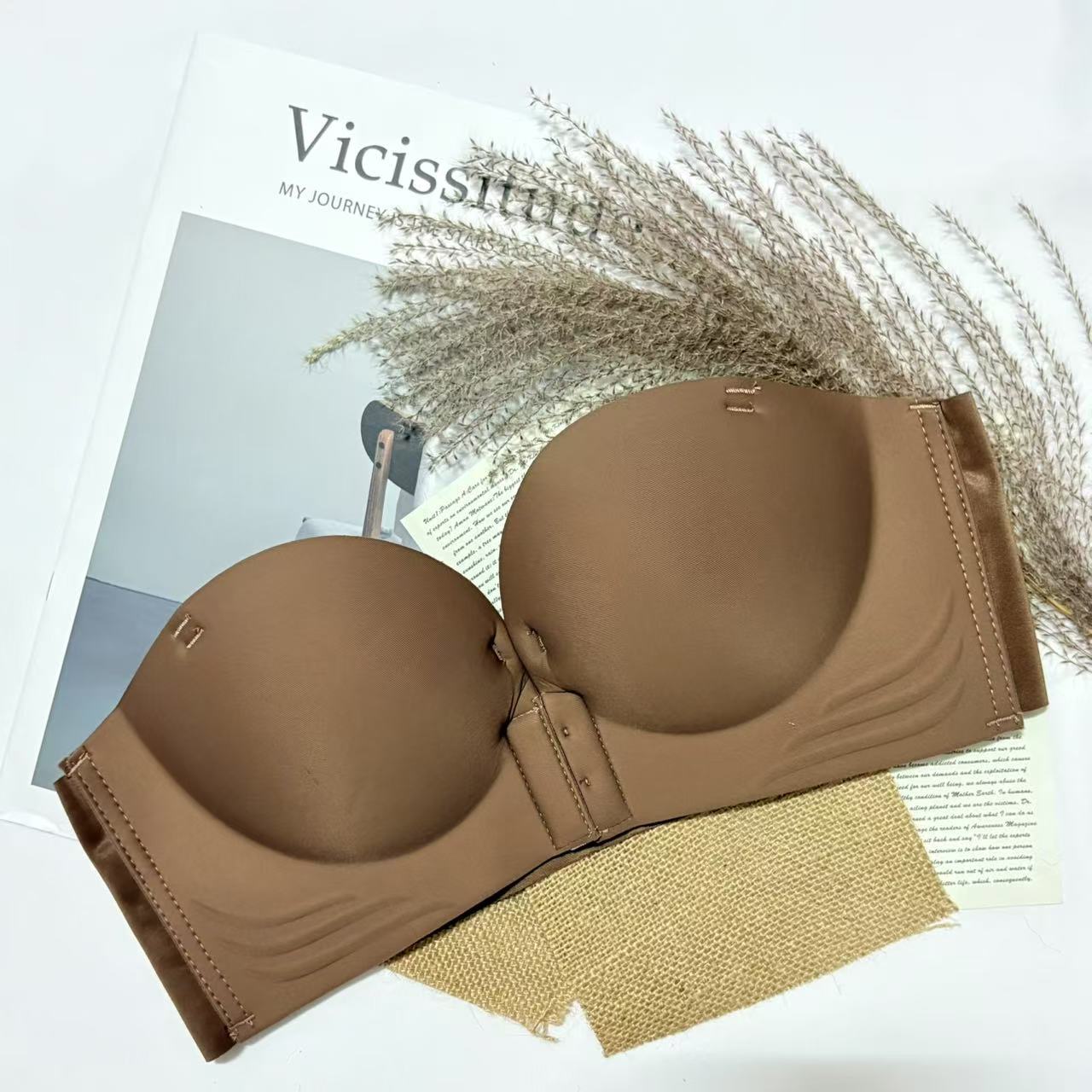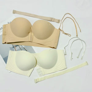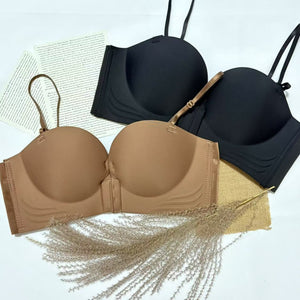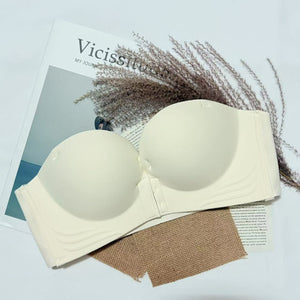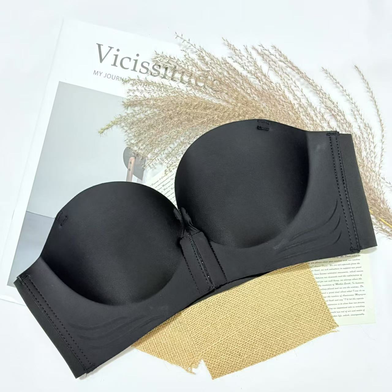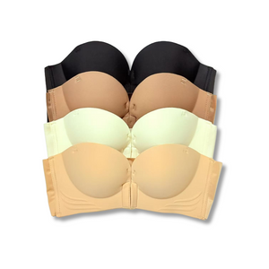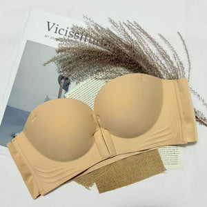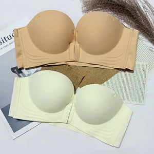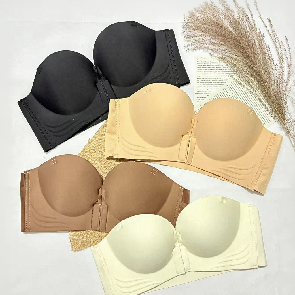 Go bare‑shoulder and feel secure. This seamless strapless bra gives soft push‑up lift with smooth, wire‑free cups and an easy front clasp. The wide, sleek band hugs your shape so it stays put and stays invisible under off‑shoulder tops and dresses.