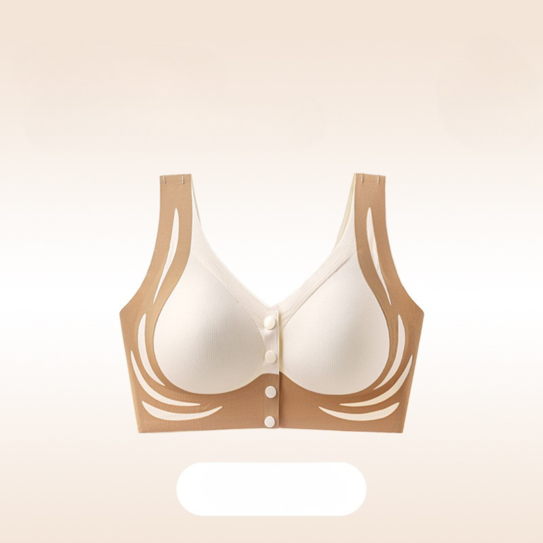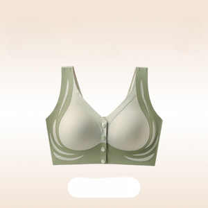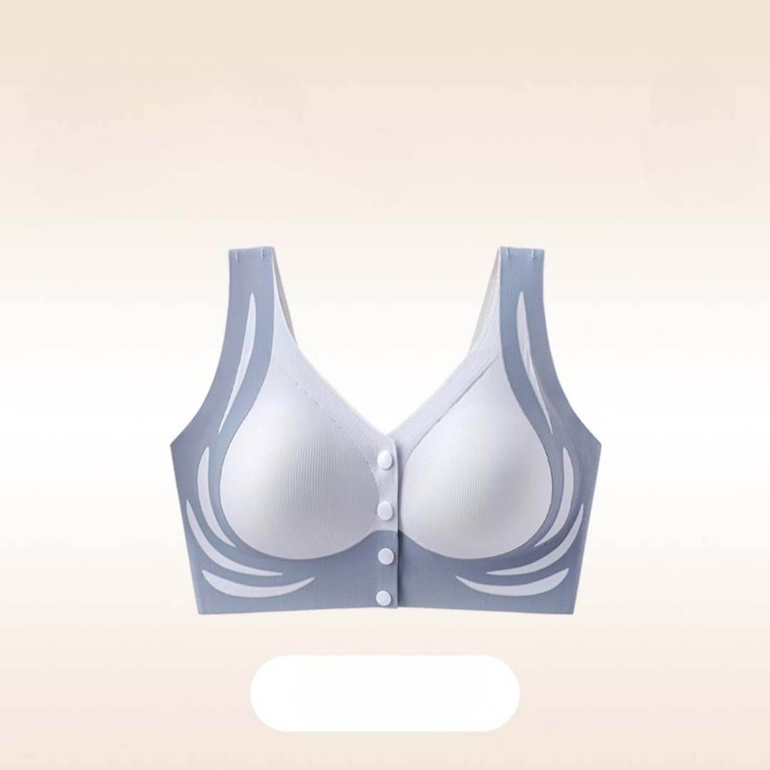 Feel calm, supported, and beautiful. This plus‑size nursing bra is soft and stretchy with a smooth, seamless feel. Wire‑free cups hug and lift, the flattering V‑neck looks lovely under any top, and the easy front buttons make feeding fast with one hand.