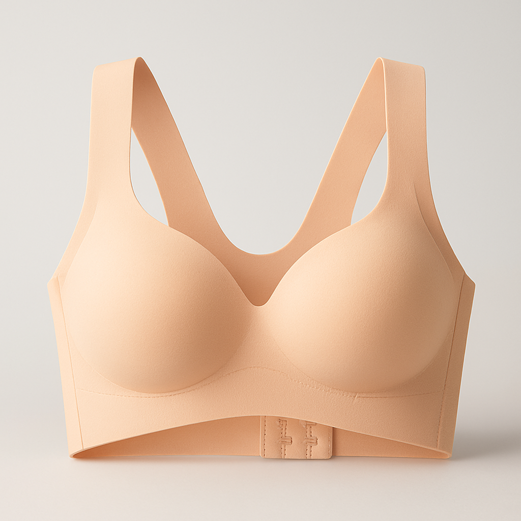 Stand tall in effortless comfort. This posture support bra smooths and lifts, while the sleek X‑back gently reminds your shoulders to roll back for a long, confident line. Soft, breathable stretch and easy front hooks make everyday wear simple—and beautiful.