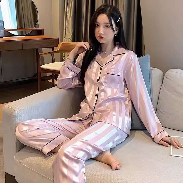 Slip into glow and comfort this satin‑soft “ice silk” set feels cool to the touch and drapes with a lovely sheen, with a relaxed V‑neck top and easy pants that breathe as you lounge, sleep, and wake in style.