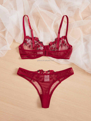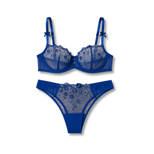 Feel beautiful in blue. This floral lace bra set is light, soft, and made to flatter delicate embroidery skims your skin, while supportive cups with removable pads let you choose a natural look or extra lift. Adjustable straps and a smooth matching panty complete the set, perfect for date night or any night you want to feel special.