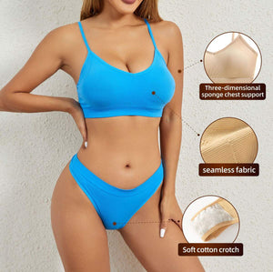 Slip into easy glamour with this high‑stretch bra and panty set. The wire‑free bra feels light and smooth, shaping your curves with soft push‑up cups and adjustable straps, while the matching hipster hugs your hips for a sleek, comfy fit—made to look beautiful from day to night.